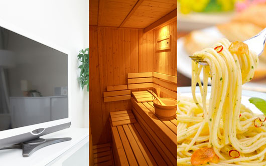 大型テレビ・サウナ等、充実の設備。